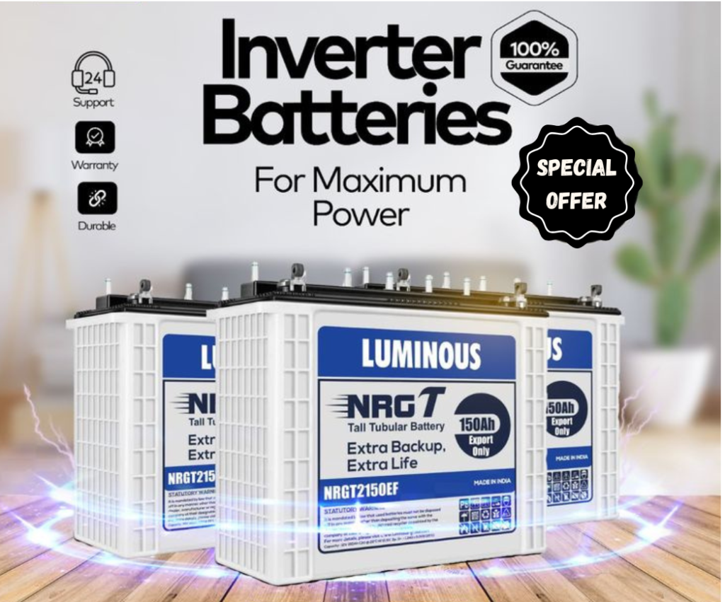 Searching for top-quality Luminous Inverter and Luminous Car Batteries? Luminous provides long-lasting, efficient, and durable inverter batteries that offer long-term power backup solutions for homes and industries. With cutting-edge technology, Luminous inverter batteries are made to offer high performance, keeping your home powered during power cuts. Luminous car batteries also provide dependable starting power, a long lifespan, and low maintenance.